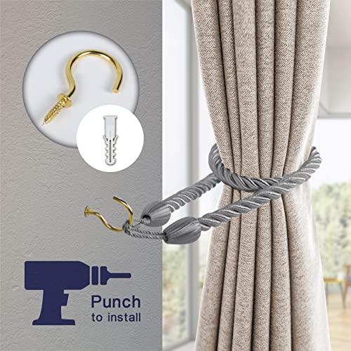 Dalababa 3 Paia Fermatende Tieback Decorativi Corda Fatta a Mano Tieback Drappeggio Clip Cravatta per Tende in Poliestere con Ganci,Grigio