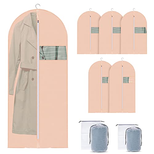 Dalababa 6 Pezzi Antipolvere Custodia Porta Abiti con Cerniera 60 x 100/120/140cm, Borsa per Abiti con Finestra Trasparente, con 4 Pezzi Borse Coulisse per Riporre e Viaggiare (Rosa)