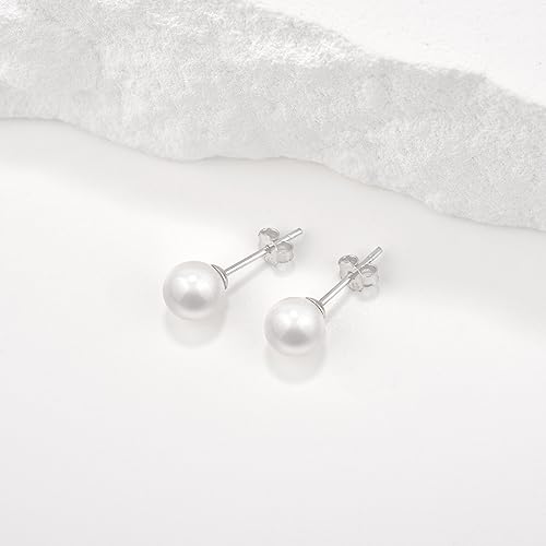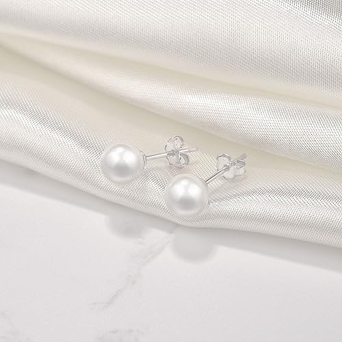 Dalaran - Orecchini a perno in argento Sterling con perle bianche, ipoallergeniche, idea regalo di Natale, 6/7/8 mm e Argento, colore: 6 mm, cod. 1128BL42R35EUE8