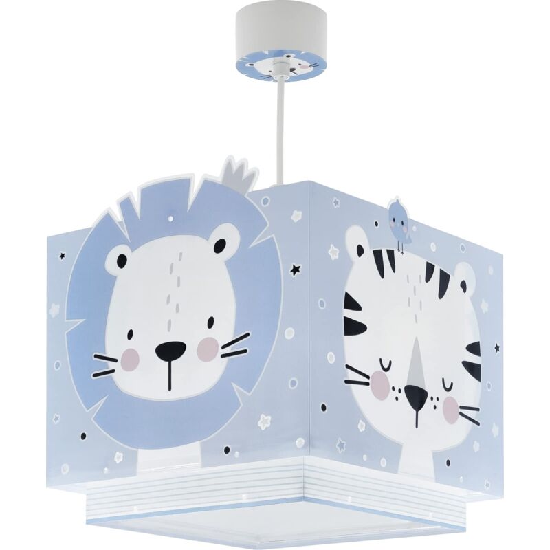 Baby Jungle Blue Jungle Plafoniera per bambini, con doppio paralume trasparente con fluorescenza, regolabile in altezza con diffusore luce inferiore removibile