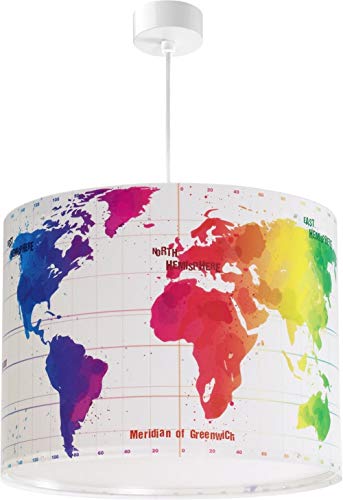 Dalber - Lampada da soffitto, modello Map, fantasia: carta geografica, led, plastica, rosso