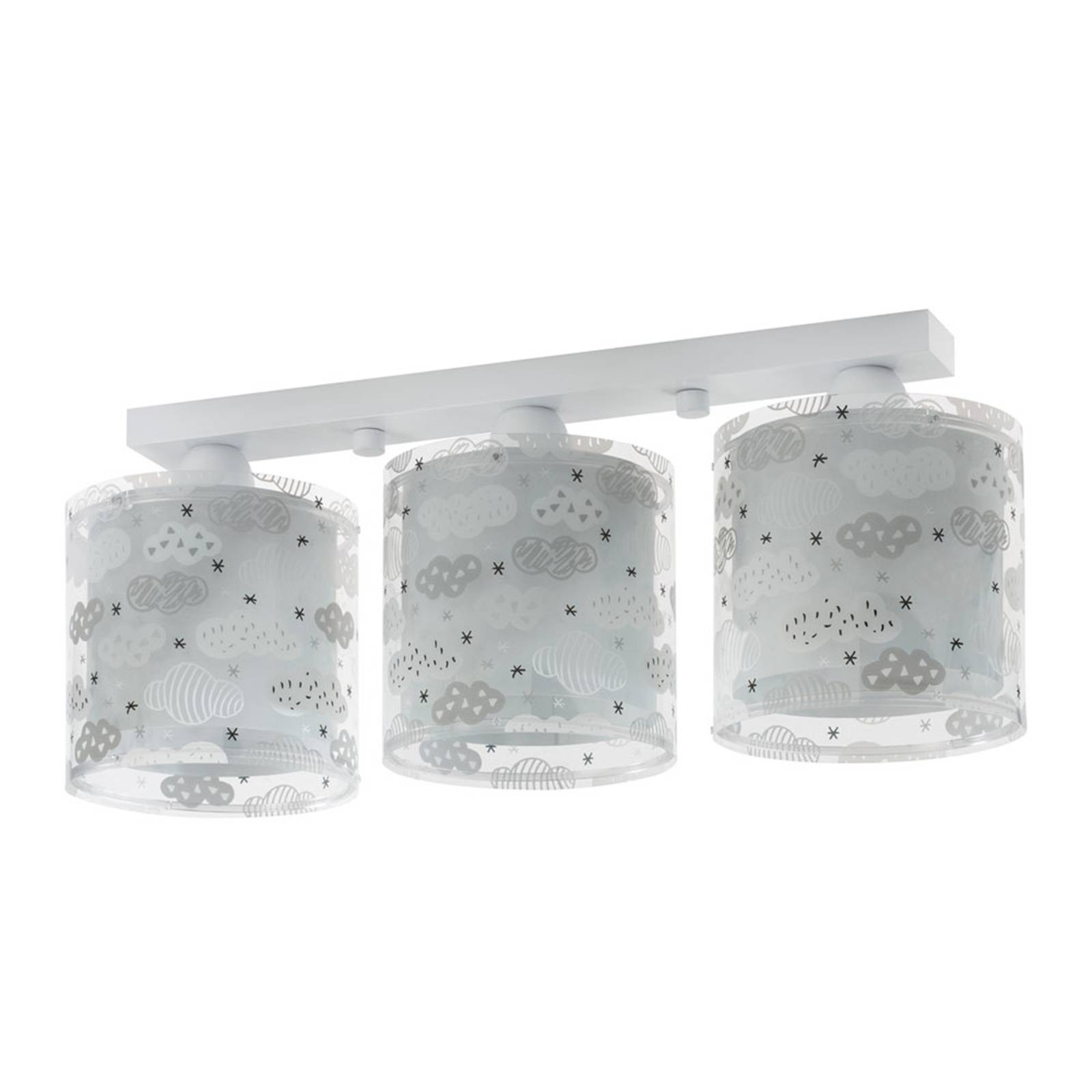 Plafoniera a 3 luci Clouds in grigio La plafoniera a 3 luci Clouds è particolarmente sorprendente grazie ai suoi paralumi plastica a due strati. I paralumi più piccoli sono in grigio sobrio e costituiscono un contrasto netto rispetto al paralume esterno. Questo rende molto accattivanti i motivi delle nuvole sul materiale trasparente. Quando si scelgono gli lampadine (non incluse in dotazione), si dovrebbe fare attenzione a una lunghezza massima di 11 cm. Sono adatti tutti i tipi di lampadine E27 con un massimo di 60 W;