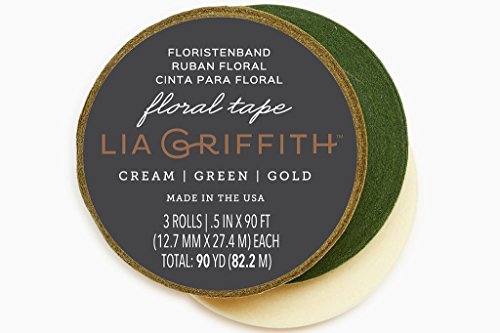 Daler Rowney Lia Griffith - Nastro floreale color crema + verde + oro, confezione da 3, colori assortiti, 50 x 200 cm