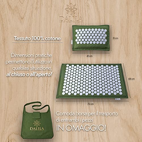 Dalila - Set Tappetino Agopressione + Cuscino Agopressione Per Massaggio Schiena, Cervicale. Tappeto Agopressione Per Alleviare Dolore Al Collo, Migliora La Circolazione Sanguigna. Borsina In Omaggio