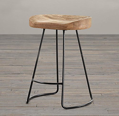 DALIU Paese Solido Legno Sgabello Sgabello Alto, sgabelli da Bar in Legno Massiccio del Ferro battuto caffè Vecchio Bar Sedia Sgabello,Colore Naturale