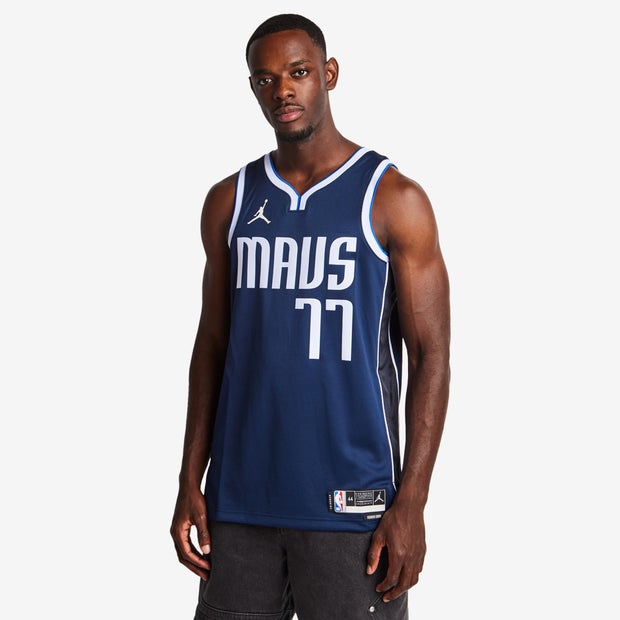 Emulate your favourite player in this Dallas Mavericks jersey, a fan-ready favourite with logo and design details that match what the pros wear on the court. Plus, it infuses breathable mesh with sweat-wicking technology to help keep you cool and dry whether you're burning up the court or just keeping it casual around town. Benefits Dri-FIT Technology moves sweat away from your skin for quicker evaporation, helping you stay dry and comfortable. Breathable mesh helps keep you feeling cool on or off the court. Product details Woven jock tag on the hem Standard fit for a relaxed, easy feel 100% polyester Machine wash Imported