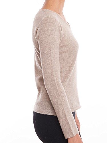 DALLE PIANE CASHMERE - Collo V 100% Cashmere, Made in Italy - Donna, Colore: Beige, Taglia: L