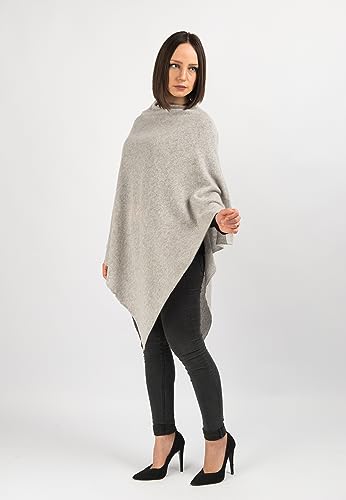 DALLE PIANE CASHMERE - Poncho 100% cashmere - Made in Italy - Donna, Colore: Grigio, Taglia unica