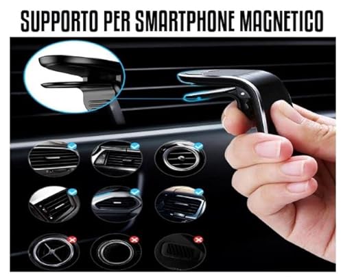 l nostro supporto HQtecno per cellulare con 5 potenti magneti fornisce una solita stabilità e sicurezza al nostro smartphone anche su una strada accidentata. La clip per il montaggio alla bocchetta dell'aria dell'auto è in silicone, non bloccherà la vista di guida e non danneggerà la griglia di ventilazione. Design L-Shape unico realizzato in lega di alluminio, rende un aspetto elegante dell'accessorio.