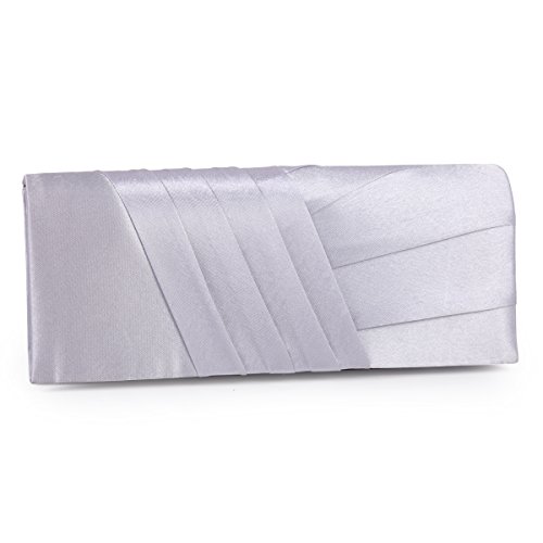 Damara pochette in satin, da cocktail o per ricevimenti di nozze, da sera, argento