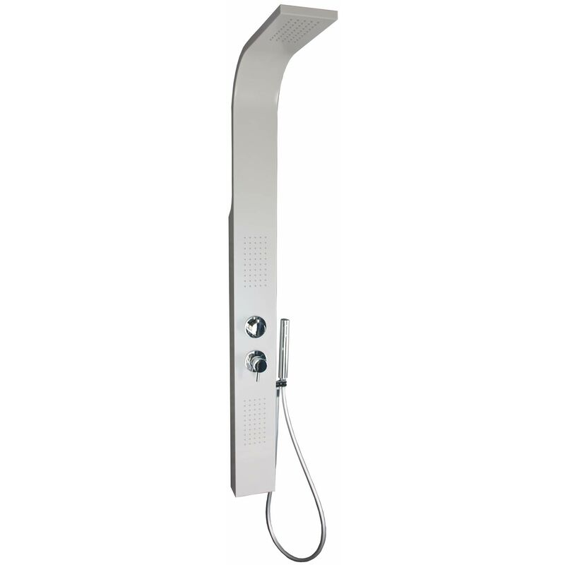 Pannello colonna doccia attrezzata con miscelatore e idromassaggio laterale in colore bianco opaco| Damast CRIO 13072 Linee quadre e decise dal design moderno compatibile con un bagno in perfetto stile contemporaneo, dai un tocco di modernità al tuo ambiente con questa colonna doccia attrezzata, rilassanti con la funzione idromassaggio laterale oppure con il soffione effetto pioggia. Questa colonna è realizzata interamente in acciaio inox, la colorazione banco opaco rende l'ambiente moderno e minimale adatto per i cliente che voglio osare nell'arredo e attenti ai piccoli dettagli CARATTERISTICHE: Marca: Damast Serie: CRIO dimensioni: 1500 x 150 x 75 mm soffione 480 x 150 flessibile anti-torsione 150 cm in PVC Idromassaggio getti laterali miscelatore meccanico deviatore Set doccia duplex in ABS cromo Garanzia 2 anni Codice prodotto: 13072 Prodotto interamente in Italia, Damast controlla ogni singolo prodotto per garantire al cliente qualità d'eccellenza