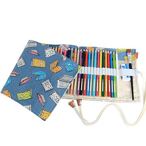 Damero 2pcs/pack Canvas Wrap per Matita Colorata,(NO Pencils Inclusi),72 Fori, Alberello + Bookroom