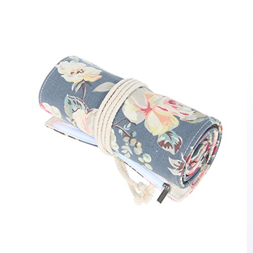 Damero Tela Wrap per matite Colorate, Cassa del Supporto di Matita Viaggi Roll up portapenne con Cerniera Tasca per Matita Accessori (No Matita Inclusa) (Peony, 48-Hole)