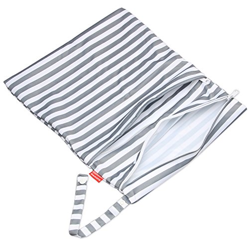 Damero Sacchetto del pannolino lavabile(Grande, Grey Strips)