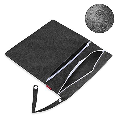 Damero 3pcs Wetbag, Borsa per Pannolini Lavabile, Sacchetto del Pannolino Resistente all'acqua e Riutilizzabile con Tasche con Cerniera, Nero