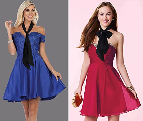 DAMILY Solido Colore Foulard lungo Sciarpa Maigra Cravatta per la sera Costumata degli anni 50, A nero., M (Nero)