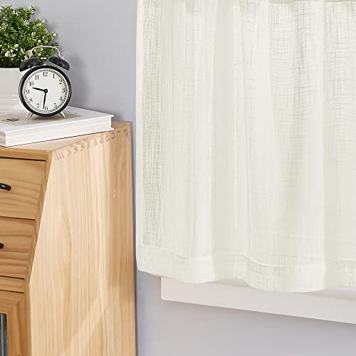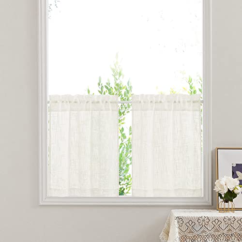 PONY DANCE Tende Corte per Finestre - Tende a Vetro con Tasca Tende per Salotto Eleganti Tende Semitrasparenti Effetto Lino Tende a Pacchetto 2 Pezzi 60x60 CM, Beige Chiaro