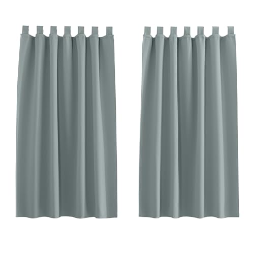PONY DANCE Tende per Interni Corte - Tende Cameretta Bambini Tende con Passanti per Salotto Tenda Oscurante da Interno Tende Moderne 2 Pezzi 140x145 CM, Blu Grigiastro