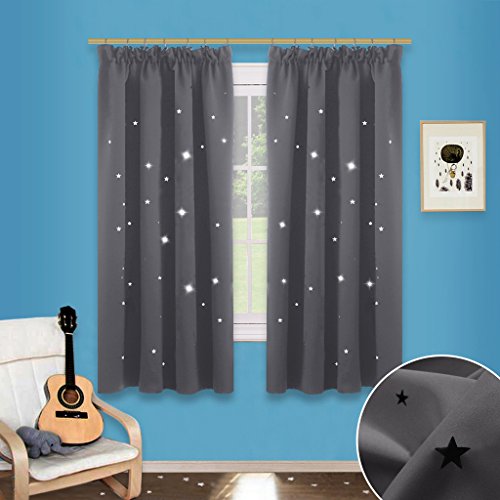 PONY DANCE Tende plissettate top fata magica tendaggi per bambini, stanza, larghezza 116,8 cm di varia profondità di 137,2 cm 182,9 cm 228,6 cm motivo stelle, Tessuto, Grey, 2 x W46" X L54"