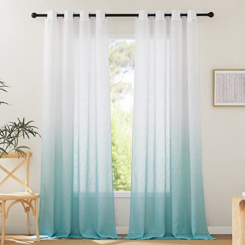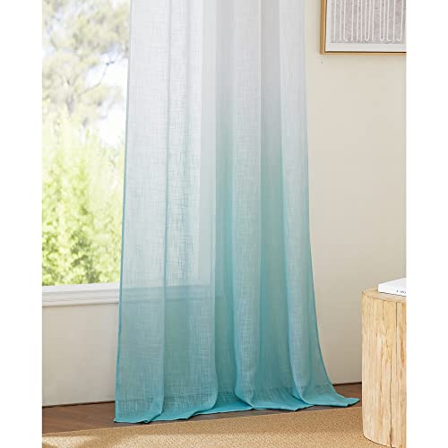 PONY DANCE Tende per Salotto Eleganti Tende Sfumate - 2 Pezzi Tende per Interni Tende Camera da Letto Moderne Tende Semitrasparenti Effetto Lino con Anelli 140x245 CM, Blu Chiaro