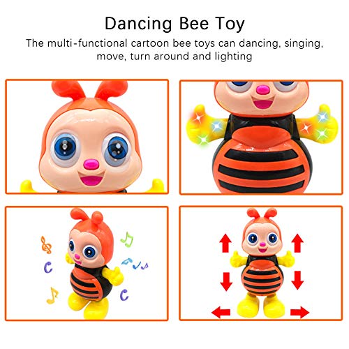 GRANDE GIOCATTOLO EDUCATIVO: I giocattoli multifunzionali delle api dei cartoni animati possono ballare, cantare, muoversi, girarsi e illuminarsi, illumineranno i bambini a vedere, ascoltare, toccare, osservare ed esplorare la cognizione. I giocattoli delle api dei cartoni animati manterranno il tuo bambino felice durante la prima fase di sviluppo