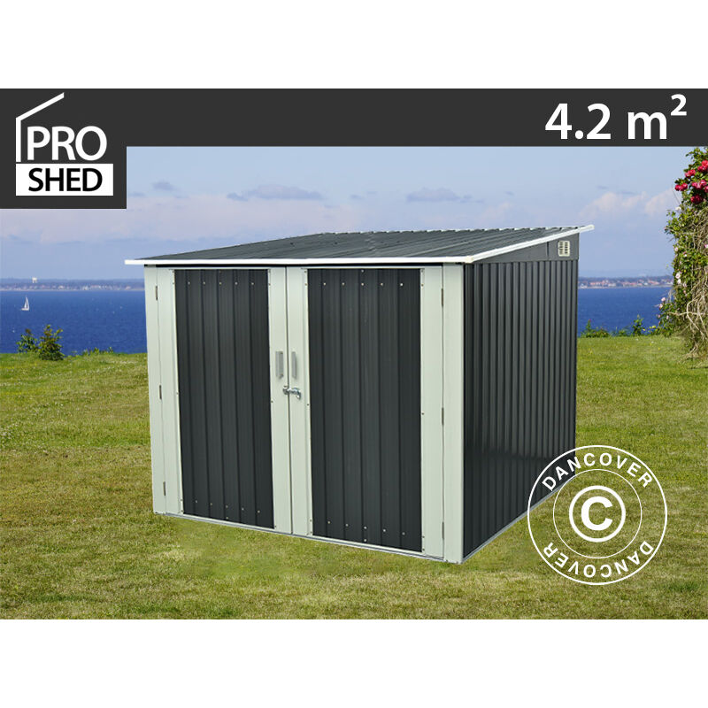 Prodotto: Larghezza: 2,06 m. Lunghezza: 2,04 m. Altezza laterale: 1,45 m. Altezza vertice: 1,63 m. Porta: 1,73x1,41m Materiali: Acciaio zincato Dimensioni esterne: 1,92x1,92 m. Pannelli tetto: 0,25mm Pannelli pareti: 0,25mm Colore: Antracite/Bianco Impermeabile: 100% Impermeabile Peso: 80,5 kg. Robusto deposito per biciclette in acciaio zincato Spazio per 4 biciclette di dimensioni standard Mantiene le biciclette al sicuro e asciutte Porta a doppia battente: 173 x 141 cm Porta chiudibile a chiave Spessore della lamina delle pareti e del tetto: 0,25 mm Elegante e resistente design a pannelli Portabici e ganci integrati per 4 biciclette Massima larghezza del pneumatico nei ganci: 5 cm Tetto spiovente con grondaia Dimensioni esterne a livello del terreno: 1,92x1,92 m Superficie del terreno 3,69 m² Max. lunghezza della/e bicicletta/e all'interno della casetta: 180 cm Elegante e moderno