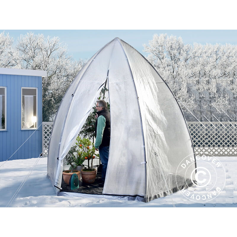 Prodotto: Larghezza: 3,40 m. Lunghezza: 3,40 m. Altezza: 2,80 m. Materiali: PE Telaio: Acciaio Colore: Trasparente UV: UV-resistente Impermeabile: 100% Impermeabile Peso: 21,5 kg.: C Protegge le tue preziose piante durante l´inverno Aiuta le piante ad acclimatarsi al freddo Funziona come una serra normale per il resto dell´anno Copertura del terreno coibentata e rimovibile con zip PE resistente ai raggi UV Perfetta trasmissione della luce Apertura per la ventilazione Zip robusta per un facile accesso Montaggio semplice e veloce Due entrate assicurano un facile accesso Borsa per il trasporto inclusa Può diventare una sfida proteggere nel modo migliore le tue piante in giardino durante l´inverno. Anche se hai spazio all´interno, le piante potrebbero soffrire a causa del cambiamento di luogo e luce. Con una serra portatile di Dancover, puoi proteggere le tue piante in crescita all´interno di