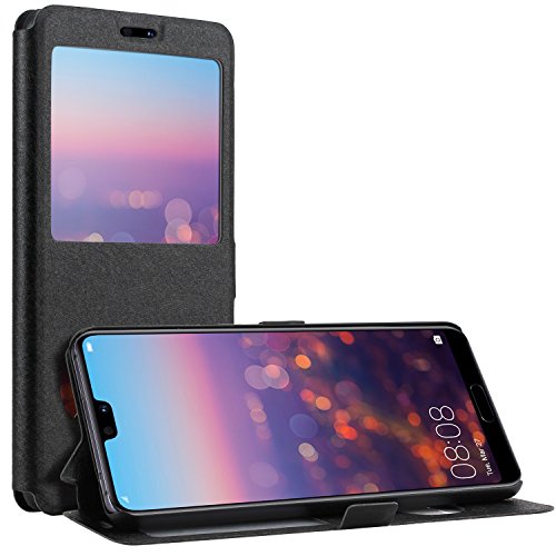 Danibos Huawei P20 PRO Flip Cover Custodia Doppia Finestra Funzione Stand Antipolvere AntiGraffio, Custodia Sottile in Pelle con Supporto per Huawei P20 PRO Nero