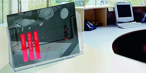 Porta Brochure da tavolo in plastica ad alta trasparenza, pulito ed essenziale, resistente e solido. Posizionalo in sicurezza dove vuoi per esporre le tue informazioni o archiviare documenti.