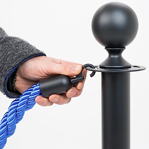 Danieli | Transenna Eliminacode Finitura Nero con Cordone Intrecciato da 2mt | Transenna da Esterno in Metallo con Cordone | Colonnina Segnapercorso per Controllo della Folla (BLU)