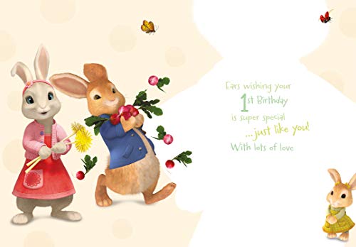 Danilo Promotions Ltd PE033 - Biglietto di auguri ufficiale Peter Rabbit per 1° compleanno, multicolore, 17,8 x 15,2 cm