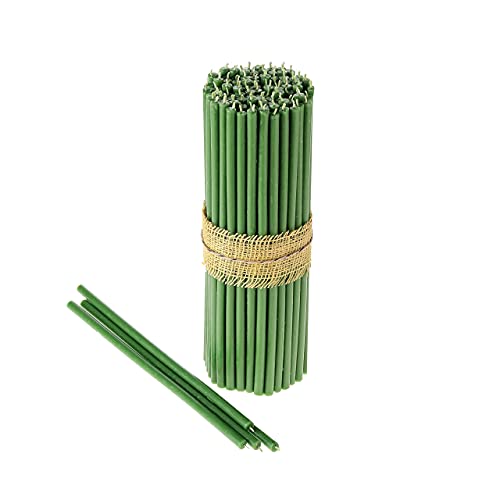 Danilovo - Candele in Cera d'Api, 50 Pezzi, Colore Verde, Candele Decorative per Preghiera, per Rituali, Decorazione o Candele di Compleanno, 15 cm x 0,5 cm