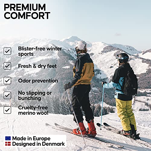 DANISH ENDURANCE 2 Paia Calze da Sci in Lana Merino, Termiche, Tecniche e Traspiranti, Uomo e Donna, Multicolore (1 x Grigio Scuro, 1 x Blu/Giallo), 43-47
