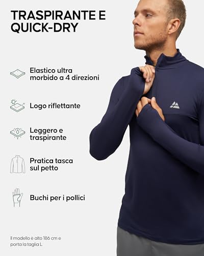 MATERIALE ELASTICO: Le nostre maglie da corsa da uomo sono realizzate con materiali super morbidi e leggeri per garantire un comfort premium. La tecnologia 4-Way stretch e le aperture per il pollice forniscono una vestibilità funzionale e mantengono le mani comode anche durante gli allenamenti più intensi