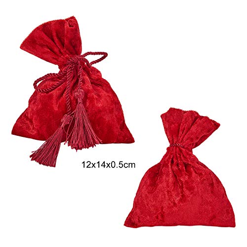 DanLingJewelry 10 sacchetti di velluto con coulisse in velluto rosso per gioielli con nappe per matrimoni, celebrazioni, feste, caramelle