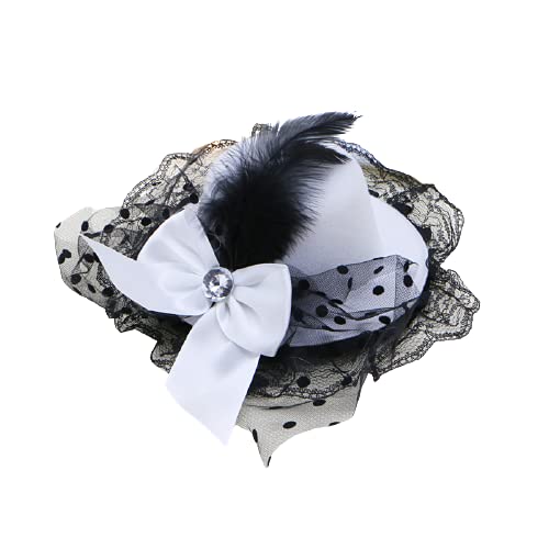DANLINI Fermagli per Capelli con Fiocco in Pizzo Mini Cappello a Cilindro con Piume di Pizzo Fancy Fascinator Party, Nero, Cappelli di Piume per Le Donne Tea Party