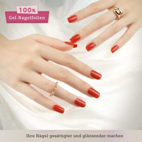 DANNI & TONI - 28 pellicole in gel semi-indurito per unghie, colore rosso (Tangerine), tinta unita
