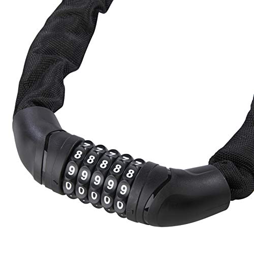 Dansi Kettenschloss, Catena, 6 x 900 mm, Lucchetto a Combinazione a 5 cifre, con Rivestimento in Tessuto, Nero. Unisex-Adulti