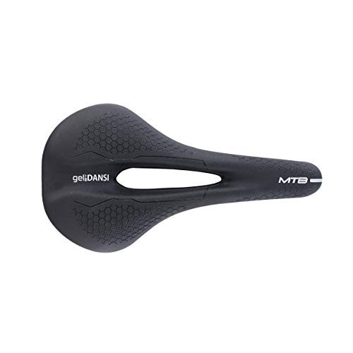 DANSI Nero, Sella per Bicicletta Modello MTB, con Gel, Apertura Anatomica, Sospensione elastomero, Colore Unisex Adulto, Taglia Unica