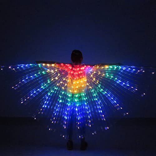 Ali di Danza del Ventre A LED, Ali d'Angelo A LED di Danza del Ventre, Luci Alari per Bambini, Ali di Farfalla Colorate Bagliore di Danza del Ventre per Bambini con Bastoncini Telescopici