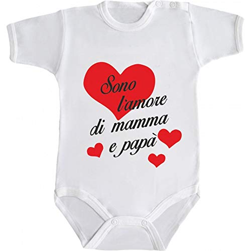 DANZA in VETRINA Body Neonato Bimba Bimbo bebé Pigiama Sono L'Amore di Mamma E papà (Bianco, 9 Mesi)