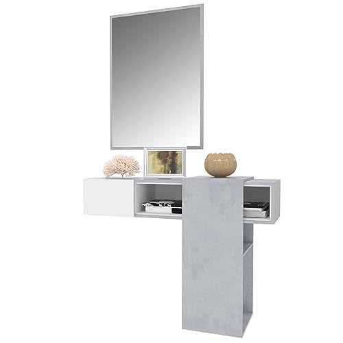 Danzica Mobile Sospeso Scorrevole da Ingresso con Specchio Moderno Salvaspazio Innovativo Funzionale Pensili Pannelli Legno Rettangolare Parete 100 x 31.5 x 75 cm Bianco Grigio Cemento