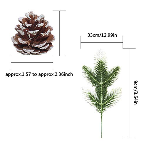 COLORE E DIMENSIONI: Coni circa 3-4cm/1.18-1.57in. Foglie di rametto 33*9cm/12.99*3.54in. Nota: Tutti i coni di pino sono naturali, possono venire in diverse dimensioni e forme, non influenzeranno i vostri usi normali.