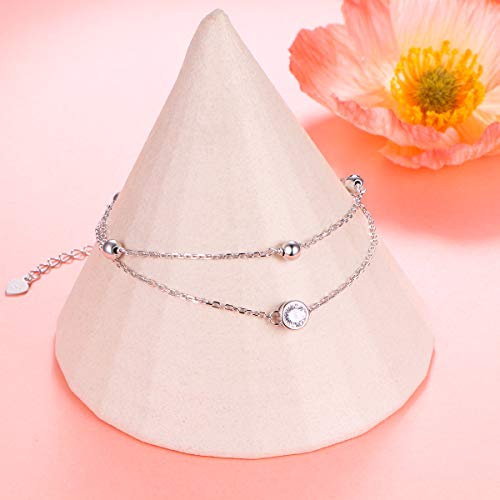 La cavigliera con perline e zirconi cubici scintillanti è realizzata in vero argento Sterling S925, sicuro per piombo, nichel e cadmio. Il grazioso ciondolo con zirconia cubica con semplice catena di perline ti rende affascinante, adatta per tutti i giorni e per abiti da spiaggia.