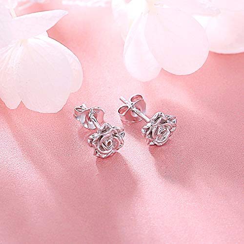 DAOCHONG - Orecchini a perno in argento Sterling S925 a forma di fiore, idea regalo romantico per donne e ragazze e base metal, colore: Placcato in oro bianco., cod. Y-49