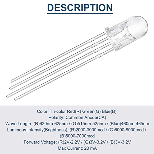 DAOKAI 100Pack 5mm LED Light Emitting Diode Anodo Comune DC 3V 20mA RGB Tri-Color (Rosso/Verde/Blu) 4 Pin Trasparente Trasparente Rotondo LED Buld Lampade Componenti elettronici per Arduino