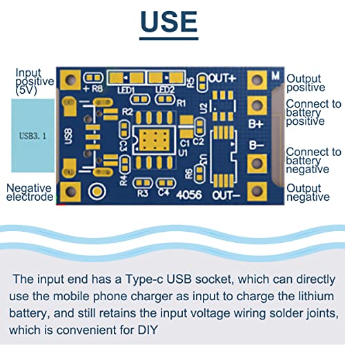 [Caratteristiche] L'estremità di ingresso è dotata di una presa USB di tipo c, che può essere utilizzata direttamente come ingresso per caricare la batteria al litio con un caricabatterie per cellulare e i giunti di saldatura del cablaggio della tensione di ingresso sono ancora riservati per un facile fai-da-te