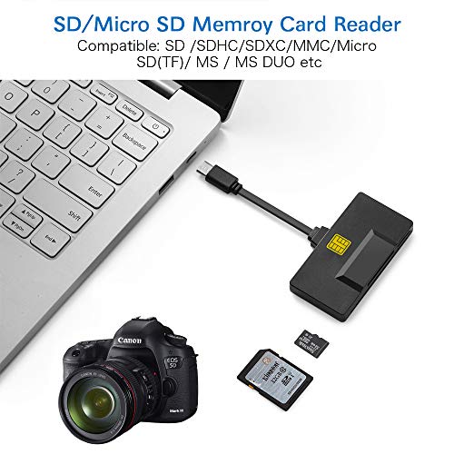 DAOKER Lettore di Smart Card USB C, Lettore di Schede CAC Militare DOD compatibile con Windows, Mac OS e Linux | Lettore di Schede di Memoria SD / Micro SD Integrato a 3 slot