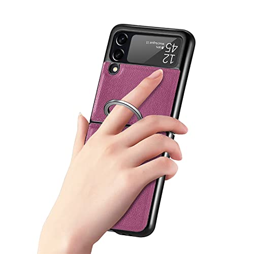 Daole - Custodia in pelle PU per Samsung Galaxy Z Flip 3, con anello, da donna, semplice e alla moda, texture simile al litchi, sottile, colore: viola