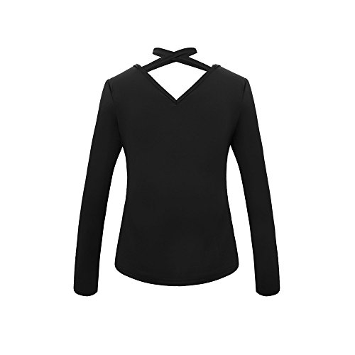 Daoope Camicia Donna Manica Lunga,Donne Casual V-Neck Cime Manica Lunga Croce T Shirt Tee Camicetta (S, Black)